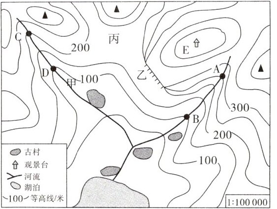 1. 读该地等高线地形图,E观景台的海拔范围为____;该地的主要地形类型是____。