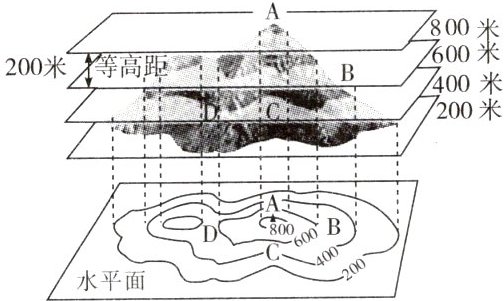(2)在同一等高线地形图上,等高线密集,坡度较____;等高线稀疏,坡度较____。