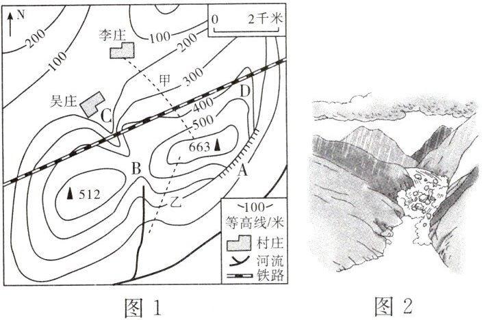 (1)图1中等高距为____米,B点所在的地形部位名称是____。