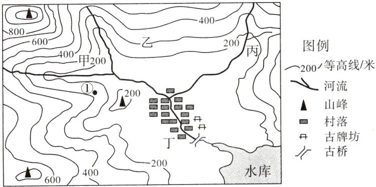 (2)甲 甲路线沿线等高线稀疏,坡度较缓