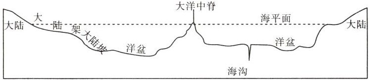 如同陆地地形一样,海洋底部也是高低起伏,形态多样。读海底地形剖面示意图,完成7~8题。