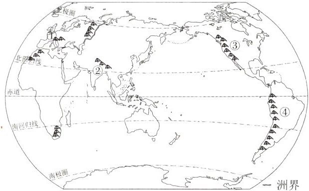 地球表面高低起伏,山高与海深相差悬殊,地表形态复杂多样。如图为世界部分山脉分布图。读图,完成11~12题。