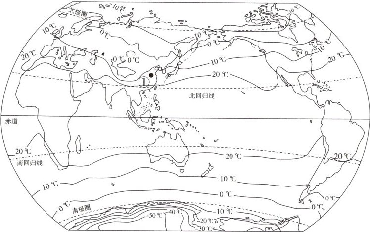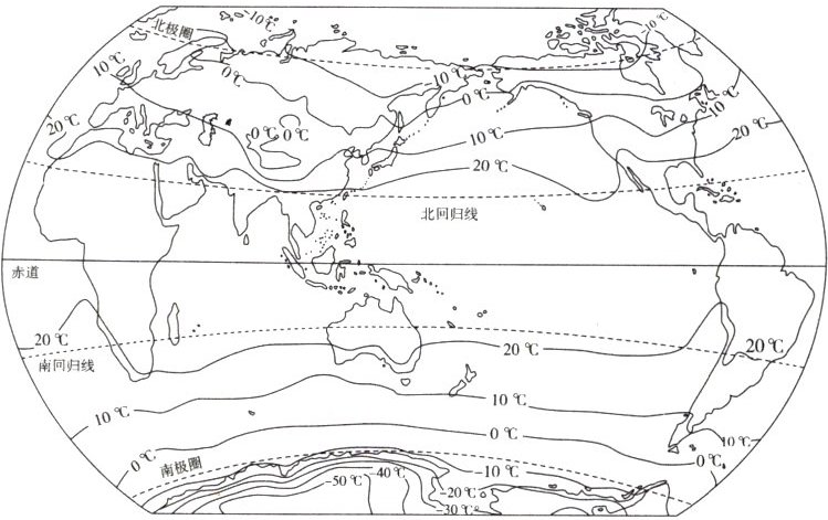 (2)20℃ -10℃ 由低纬向高纬逐渐降低
