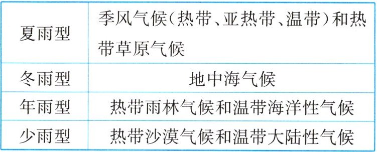 |夏雨型|季风气候(热带、亚热带、温带)和热带草原气候|