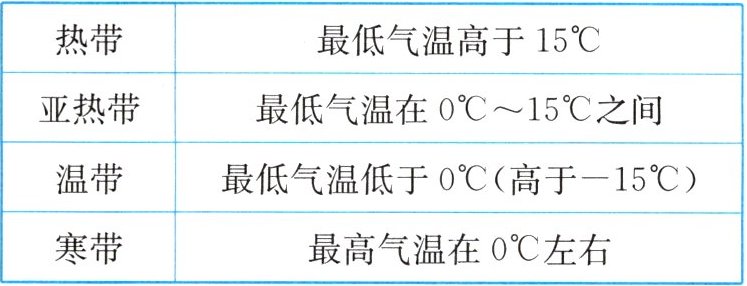 此外,还需根据最冷月与最热月出现的具体月份确定南北半球,否则可能将夏雨型与冬雨型气候类型混淆。在判断气候类型时,还可以依据气温和降水的坐标、经纬网以及海陆轮廓等辅助判断。