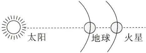 2020年7月23日,中国首次火星探测任务“天问一号”火星探测器在海南文昌航天基地发射成功,并于2021年5月15日成功着陆火星,开启了中国探测火星的新征程。读地球、火星、太阳的位置示意图(非真实比例),完成3~4题。