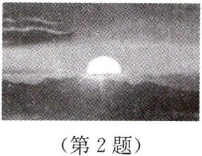 2. (新情境)唐代李白《日出行》云:“日出东方隈,似从地底来.”描述的是看日出的景象,意思是太阳从东方升起,似从地底而来. 如图所示,此时观测到地平线和太阳所成的视图可能是(