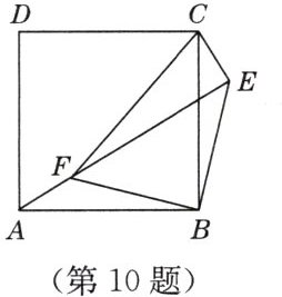 10. 如图,点 E 是正方形 ABCD 外一点,点 F 是线段 AE 上一点,△EBF 是等腰直角三角形,其中∠EBF= $90^{\circ}$,连接 CE,CF。