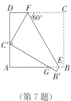 7. 如图,正方形 ABCD 的边长为 3,E,F 分别是 AB,CD 上的点,且∠CFE= $60^{\circ}$,将四边形 BCFE 沿 EF 翻折,得到四边形 $B'C'FE$,$C'$恰好落在 AD 边上,$B'C'$交 AB 于点 G,则 GE 的长是(