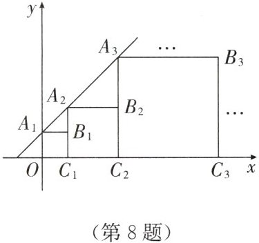 8. (规律探究)【2023 池州期中】如图,正方形 $A_1B_1C_1O$,$A_2B_2C_2C_1$,$A_3B_3C_3C_2$,…按如图的方式放置,点 $A_1$,$A_2$,$A_3$,…和点 $C_1$,$C_2$,$C_3$,…分别在直线 $y = x + 1$ 和 x 轴上,则点 $B_{2023}$ 的纵坐标是(