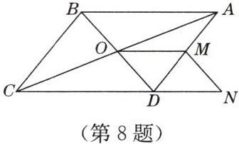 8. 如图,在平行四边形$ABCD$中,对角线$AC$,$BD相交于点O$,点$M为AD$的中点,过点$M作MN// BD交CD的延长线于点N$.