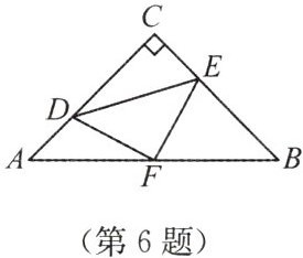 6. 如图,在等腰直角三角形$ABC$中,$\angle C = 90^{\circ}$,$AC = 6$,$F是边AB$的中点,点$D$,$E分别在边AC$,$BC$上运动,且保持$AD = CE$. 连接$DE$,$DF$,$EF$. 在此运动变化的过程中,下列结论:①$\triangle DFE$是等腰直角三角形;②四边形$CDFE$不可能为正方形;③$DE长度的最小值为3\sqrt{2}$;④四边形$CDFE$的面积保持不变;⑤$\triangle CDE面积的最大值为4$. 其中,正确的结论是(