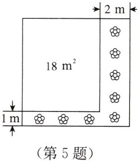 5. 公园有一块正方形的空地,后来从这块空地上划出部分区域栽种鲜花(如图),原空地一边减少了1m,另一边减少了2m,剩余空地的面积为$18m^{2}$,求原正方形空地的边长.设原正方形空地的边长为x m,则可列方程为(