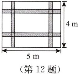 12. 如图,一块长 5 m、宽 4 m 的地毯,为了美观,设计了两横、两纵的配色条纹(图中阴影部分),已知配色条纹的宽度相同,所占面积是整个地毯面积的 $ \frac{17}{80} $.