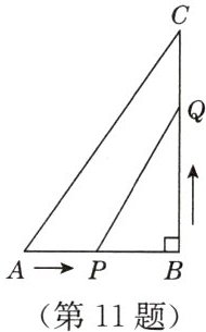 11. 如图,在 $ \triangle ABC $ 中,$ \angle B = 90^{\circ} $,$ AB = 5 cm $,$ BC = 7 cm $.点 $ P $ 从点 $ A $ 开始沿 $ AB $ 边向点 $ B $ 以 $ 1 cm/s $ 的速度移动,到点 $ B $ 时停止运动,点 $ Q $ 从点 $ B $ 开始沿 $ BC $ 边向点 $ C $ 以 $ 2 cm/s $ 的速度移动,到点 $ C $ 时停止运动.
