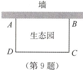 9. 【2023 淮安中考】为了便于劳动课程的开展,学校打算建一个矩形生态园 $ ABCD $(如图),生态园一面靠墙(墙足够长),另外三面用 18 m 的篱笆围成.生态园的面积能否为 $ 40 m^{2} $? 如果能,请求出 $ AB $ 的长;如果不能,请说明理由.