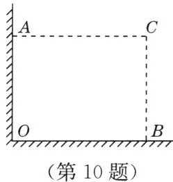 10. 如图,在直角墙角 $ AOB $($ AO \perp OB $,且 $ OA $,$ OB $ 长度不限)中,要砌 20 m 长的墙,与直角墙角 $ AOB $ 围成地面为矩形的储仓,且地面矩形 $ AOBC $ 的面积为 $ 96 m^{2} $.