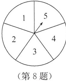 8. 如图所示的转盘被均分成 5 等份,分别标记数字 1,2,3,4,5,小娟和小丽玩转盘游戏,转动转盘,指针停在哪个区域就得相应的分数(指针停在分界线则重转).