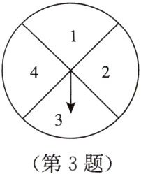 3. 下图是一个转盘,转盘被平均分成 $4$ 等份,即被分成 $4$ 个大小相等的扇形,$4$ 个扇形分别标有数字 $1$,$2$,$3$,$4$,指针的位置固定,用力转动转盘后任其自由停止,每次指针落在每一个扇形的机会均等(若指针恰好落在分界线上,则重转)。