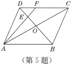 5. 如图,在 $ □ ABCD $ 中,$ AC $,$ BD $ 交于 $ O $,$ E $ 为 $ OD $ 的中点,连接 $ AE $ 并延长交 $ DC $ 于 $ F $,则 $ EF:AE $ 等于(