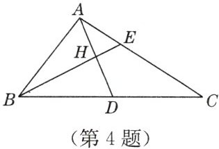 4. 如图,在$\triangle ABC$中,$D为BC$边上一点,连接$AD$,$H为AD$的中点,延长$BH交AC于点E$. 求证:$\frac{AE}{CE} = \frac{BD}{BC}$.