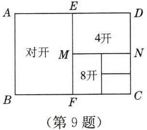 9. 如图,一般书本的纸张是由原纸张多次对开得到的. 矩形 $ABCD$ 沿 $EF$ 对开后,再把矩形 $EFCD$ 沿 $MN$ 对开,依此类推. 若各种开本的矩形都相似,那么 $\frac{AB}{AD}$ 等于(