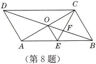 8. 如图,$□ ABCD的对角线AC,BD交于点O$,$CE平分\angle BCD交AB于点E$,交$BD于点F$,且$\angle ABC= 60^{\circ},AB= 2BC$,连接$OE$.下列结论: