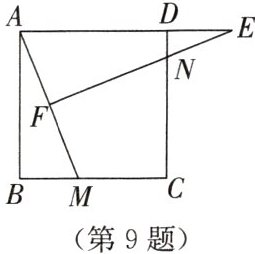 9. 如图,$M是正方形ABCD的边BC$上一点,$F是AM$的中点,过点$F作AM$的垂线,交$DC于点N$,交$AD的延长线于点E$.