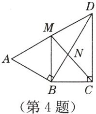 4. 如图,∠ABD = ∠BCD = 90°,DB 平分∠ADC,过点 B 作 BM//CD 交 AD 于点 M,连接 CM 交 DB 于点 N.