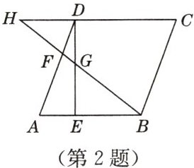 2. 如图,点 E,F 分别在菱形 ABCD 的边 AB,AD 上,且 AE = DF,BF 交 DE 于点 G,延长 BF 交 CD 的延长线于点 H. 若$\dfrac{AF}{DF}= 2$,则$\dfrac{HF}{BG}$的值为(