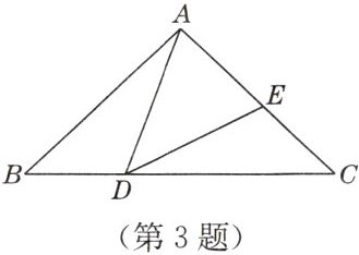 3. 如图,在$\triangle ABC$中,$AB= AC$,$D$,$E分别是边BC$,$AC$上的点,且$\angle ADE= \angle C$。求证:$AC\cdot CE= CD\cdot BD$。