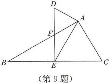 9. 已知:如图,$\triangle ADE的顶点E在\triangle ABC的边BC$上,$DE与AB相交于点F$,$AE^{2}= AF\cdot AB$,$\angle DAF= \angle EAC$。求证: