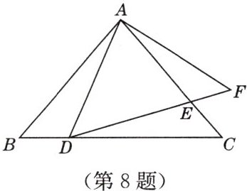 8. 已知:如图,在$\triangle ABC$中,点$D$,$E分别在边BC$,$AC$上,点$F在DE$的延长线上,$AD= AF$,$AE\cdot CE= DE\cdot EF$。