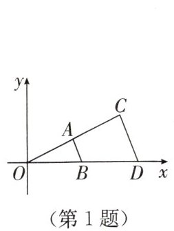 1. 如图,$\triangle AOB与\triangle COD是以点O$为位似中心的位似图形,相似比为$1:2$. 若$A(2,1)$,则点$C$的坐标为(