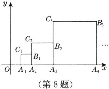 8. 正方形$A_1A_2B_1C_1$,正方形$A_2A_3B_2C_2$,…$$,正方形$A_nA_{n + 1}B_nC_n$按如图位置依次摆放,已知点$C_1$,$C_2$,$C_3$,…$$,$C_n在直线y = x$上,点$A_1的坐标为(1,0)$.