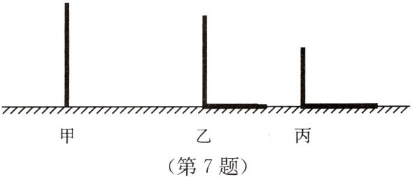 7. 有三根垂直地面放置的木杆甲、乙、丙,在路灯下乙、丙的影子如图,试确定路灯灯泡的位置,再作出甲的影子.(不写作法,保留作图痕迹)