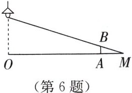 6. 如图,路灯距离地面 $8$ m,身高 $1.6$ m的小明站在距离灯的底部(点 $O$)$20$ m的 $A$ 处,则小明的影子 $AM$ 长为