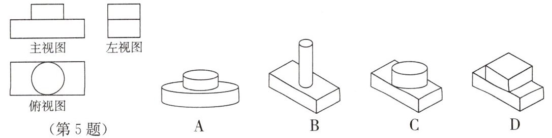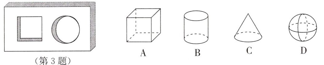 3. 下图是一个带有方形空洞和圆形空洞的儿童玩具.如果用下列某个几何体作为塞子,那么既可以堵住方形空洞又可以堵住圆形空洞的几何体是(