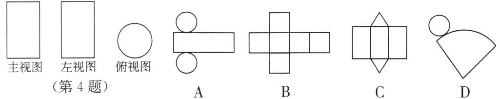 4. 某个几何体的主视图、左视图和俯视图如图所示,这个几何体的表面展开为(