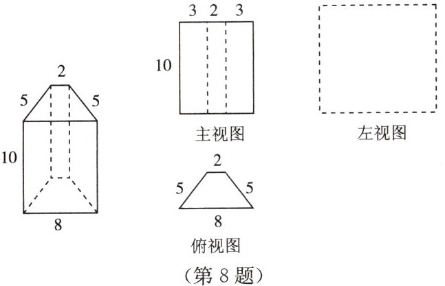 8. 下图是一个直四棱柱及其主视图和俯视图(等腰梯形)。