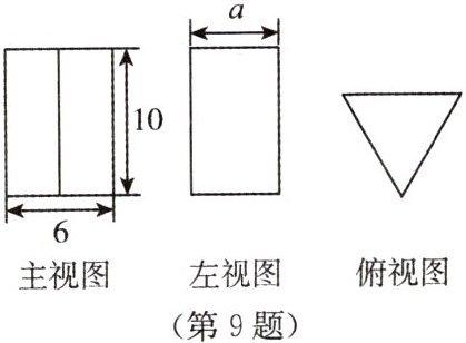 9. 一个几何体的三视图如图所示,其中俯视图为正三角形。