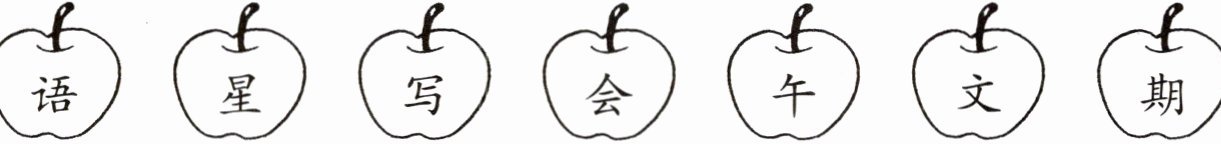 我会读“语、星、会”,将这三个苹果形状内的“语、星、会”字涂上喜欢的颜色(具体涂色操作在实际纸质答题卡完成)。