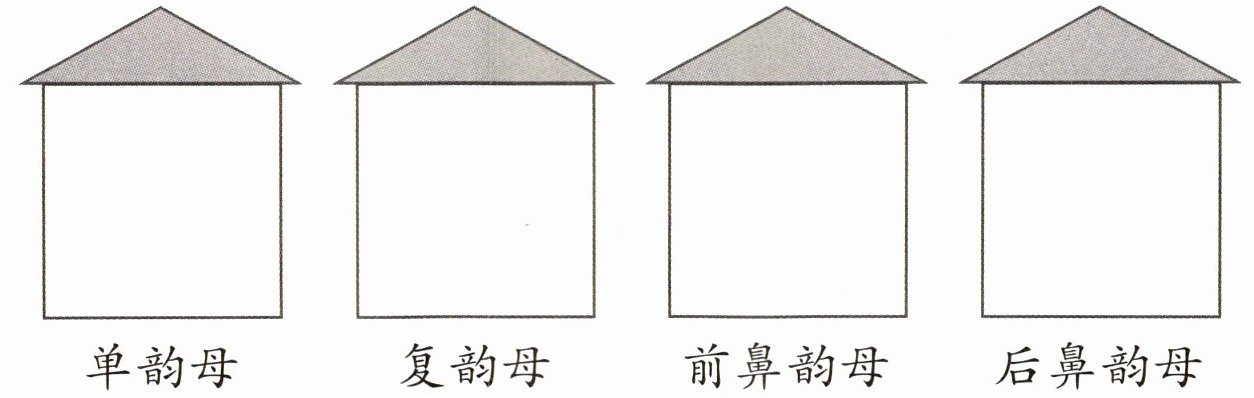 单韵母:a i o 复韵母:ai ui ou 前鼻韵母:an in un 后鼻韵母:ang ing eng