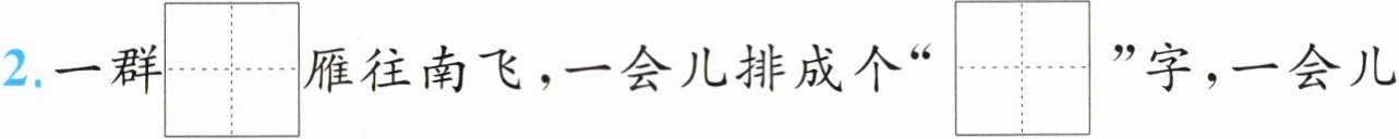 2. 一群雁往南飞,一会儿排成个“”字,一会儿排成个“”字。