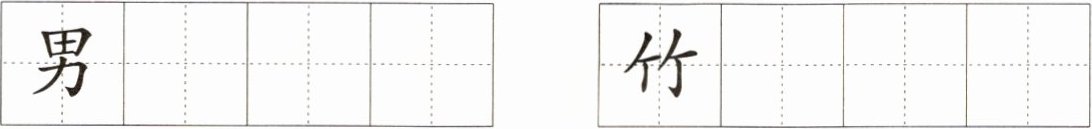 (注:每个汉字按题目要求在田字格中正确书写,此处以文字形式呈现。实际作答需在答题卡对应田字格内规范书写,遵循各字笔顺规则:“男”先写“田”后写“力”;“竹”左右结构,左窄右宽,均为撇、横、竖、撇、捺;“云”笔顺为横、横、撇折、点;“叶”先写“口”后写“十”。)