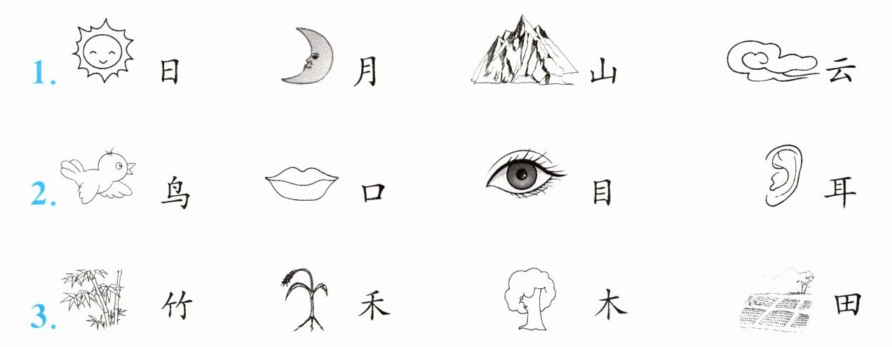 禾:第一笔为撇,在左半格中间偏上位置;第二笔横,在横中线上方;第三笔竖,在竖中线上;第四笔撇、第五笔捺,分别在左下格和右下格。