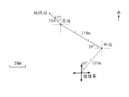 (1)画出佳佳从家步行到地铁站的路线,并标出邮局、商场和地铁站的位置。(7分)