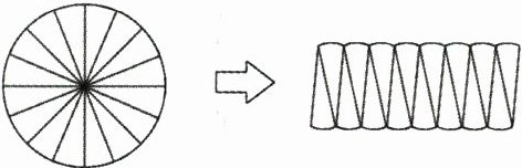 8. 把一个圆分成若干(偶数)等份,然后把它剪开,照下图的样子拼起来,拼成的图形的周长是16.56cm,圆的面积是(