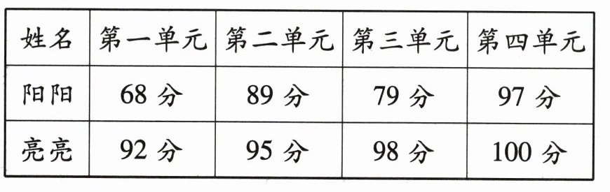 1. 下面是阳阳和亮亮的数学单元检测成绩统计表。