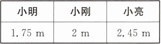 典例$ 2 $ 下表是小明、小刚、小亮在某节体育课上的立定跳远测试成绩.